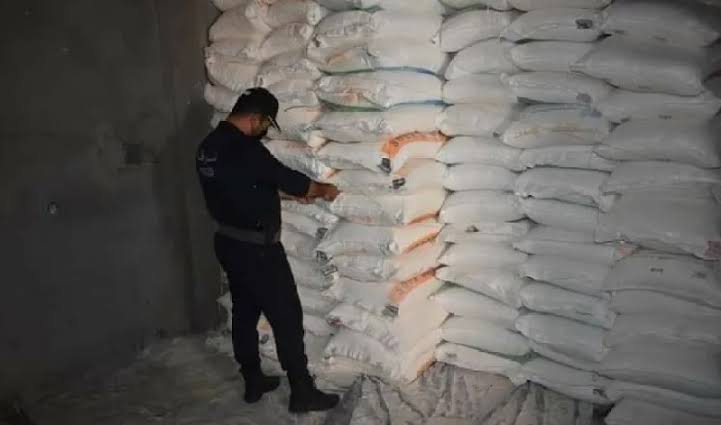 كما عثرعناصر الضبطية على أكياس من السميد بوزن إجمالي بلغ 61.5 قنطارا غير مفوترة وموجهة للمضاربة، مخزنة داخل مستودع غير مصرح به مِلك لأحد الخواص بمدينة ميلة.