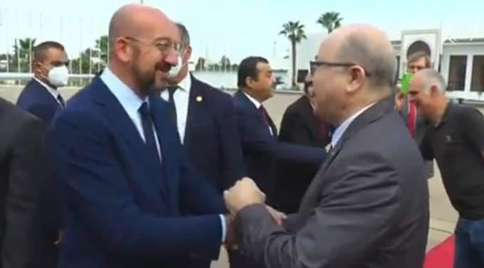 وحل رئيس المجلس الأوروبي، شارل ميشيل، ، بالجزائر، حيث كان في استقباله بمطار هواري بومدين الدولي. الوزير الأول أيمن بن عبد الرحمان.