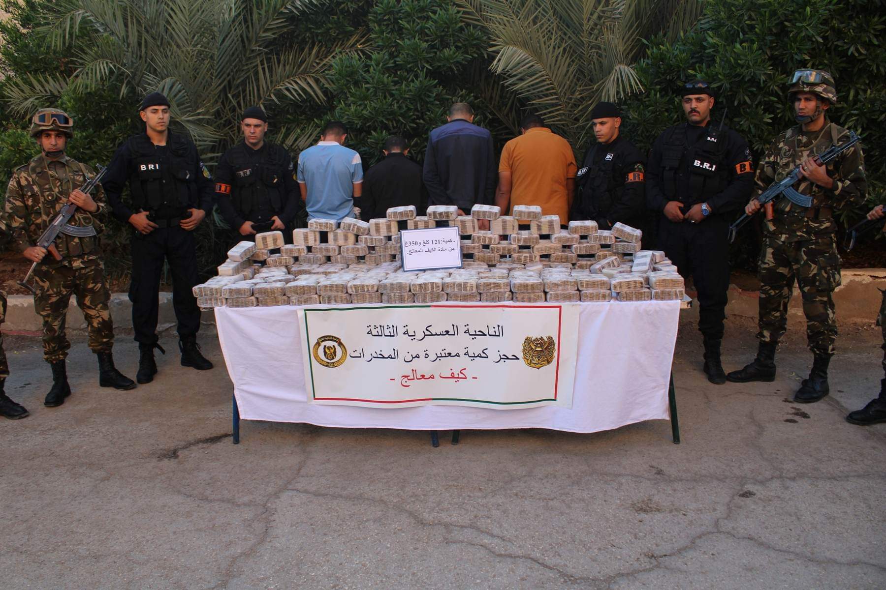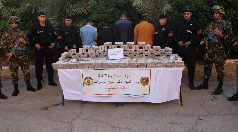 وفي إطار محاربة الجريمة المنظمة ومواصلة للجهود الحثيثة الهادفة إلى التصدي لآفة الاتجار بالمخدرات, “أوقفت مفارز مشتركة للجيش الوطني الشعبي, بالتنسيق مع مختلف مصالح الأمن خلال عمليات مختلفة عبر النواحي العسكرية, 50 تاجر مخدرات وأحبطت محاولات إدخال كميات ضخمة من المخدرات عبر الحدود مع المغرب, تقدر بـ 14 قنطار و50 كيلوغرام من الكيف المعالج, فيما ضبطت 25 كيلوغرام من مادة الكوكايين و47810 قرص مهلوس”.