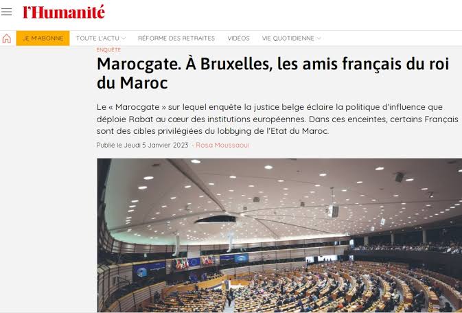 نشرت صحيفة “لومانيتي” الفرنسية تحقيقا في فضيحة “ماروك غايت” المدوية بالبرلمان الأوروبي عادت فيه إلى “سياسة النفوذ التي تعتمدها الرباط داخل المؤسسات الأوروبية” عن طريق رشوة أعضاء في البرلمان الأوروبي مقابل دعمهم لمصالح نظام المخزن.