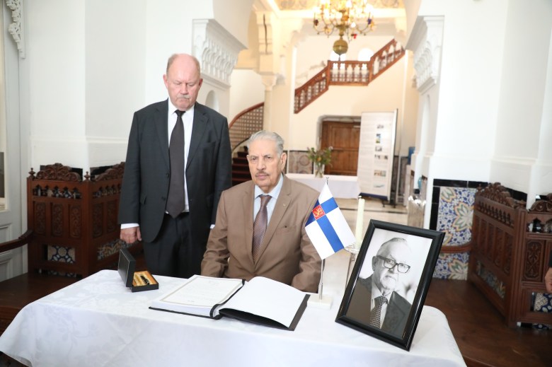 وقّع اليوم الاثنين، رئيس مجلس الأمة صالح ڨوجيل باسم رئيس الجمهورية عبد المجيد تبون، بمقر سفارة جمهورية فنلندا بالجزائر، على سجلّ التعازي، بعد وفاة الرئيس الأسبق لفنلندا، مارتي أهتيساري “Martti Ahtisaari”.