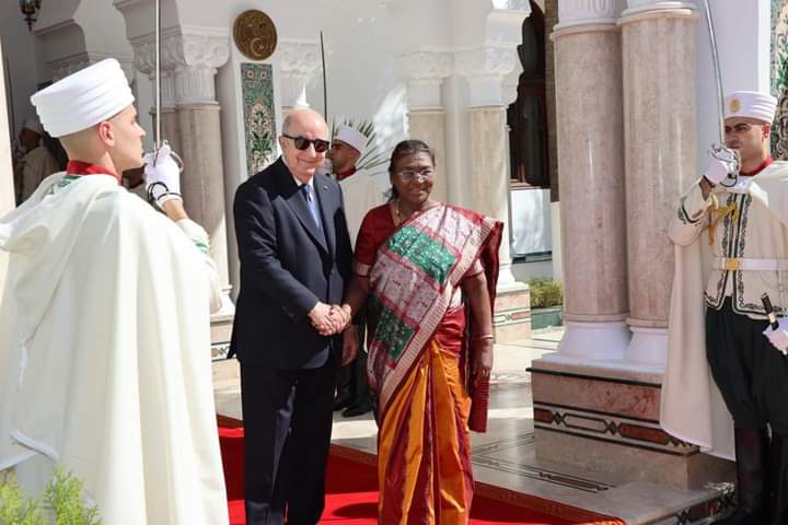خص رئيس الجمهورية, السيد عبد المجيد تبون, هذا الاثنين, رئيسة جمهورية الهند, السيدة دروبادي مورمو, باستقبال رسمي بمقر رئاسة الجمهورية.