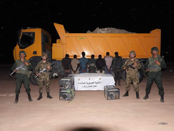 وبكل من تمنراست وبرج باجي مختار وإن صالح وإن قزام وجانت , “أوقفت مفارز للجيش الوطني الشعبي 117 شخصا وضبطت 33 مركبة و102 مولد كهربائي و63 مطرقة ضغط و5 أجهزة للكشف عن المعادن بالإضافة إلى كميات من خليط خام الذهب والحجارة والمتفجرات ومعدات تفجير وتجهيزات تستعمل في عمليات التنقيب غير المشروع عن الذهب”.