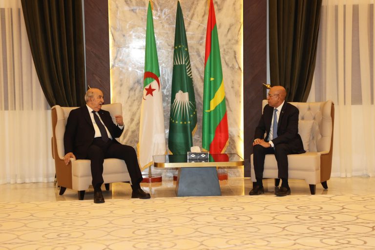 أجرى رئيس الجمهورية, السيد عبد المجيد تبون, اليوم الاثنين, محادثات على انفراد مع رئيس الجمهورية الاسلامية الموريتانية الشقيقة, السيد محمد ولد الشيخ الغزواني و ذلك بالقاعة الشرفية لمطار نواكشوط الدولي.
