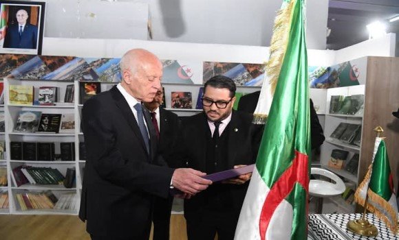 وفي هذا السياق –يضيف البيان– زار مساء أمس رئيس الجمهورية التونسية, السيد قيس سعيد, الجناح الجزائري, في إطار افتتاحه الرسمي لفعاليات المعرض, “حيث توقف مطولا عند محتويات الجناح, معبرا عن تقديره الكبير للجزائر وإعجابه العميق برموزها الفكرية والثقافية التي تركت بصمات خالدة في الذاكرة العربية والإنسانية”.