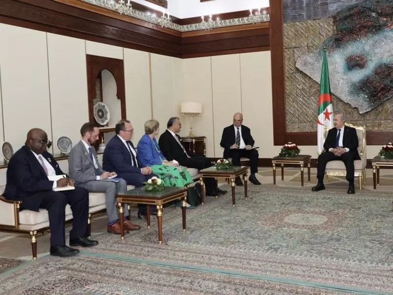 وحضر اللقاء عن الجانب الجزائري السادة: بوعلام بوعلام، مدير ديوان رئاسة الجمهورية، أحمد عطاف، وزير الدولة وزير الشؤون الخارجية والجالية الوطنية بالخارج والشؤون الإفريقية، عمار عبة، مستشار لدى رئيس الجمهورية مكلف بالشؤون الدبلوماسية، وسعادة سفير الجزائر بواشنطن صبري بوقادوم، مثلما أوضحه المصدر ذاته.