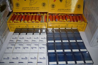 وتمثلت السلع المهربة في “ 1070 وحدة من السجائر مختلفة الأنواع،312 وحدة من المعسل ،78 وحدة من المفرقعات الشماريخ أجنبية الصنع”، كما مكنت العملية من توقيف شخصين يبلغان من العمر 18 و59 سنة ،حسب بيان لذات المصالح ,