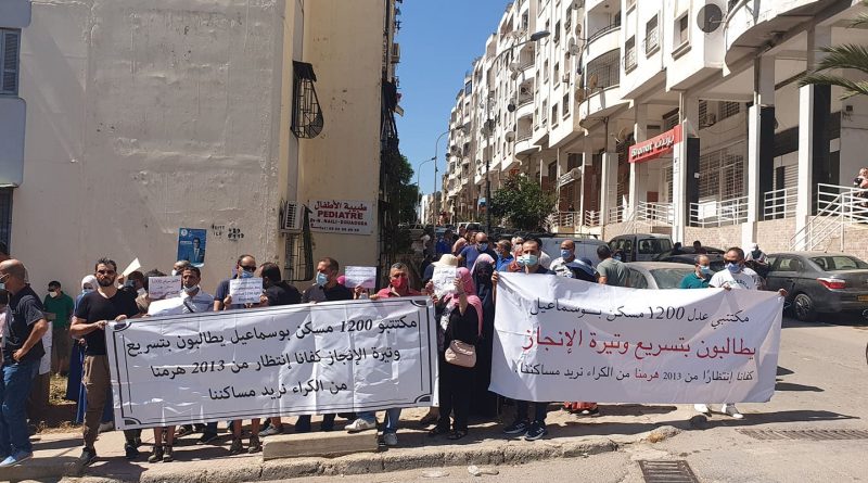ورفع المحتجون الذين كانوا بالعشرات أمام مقر الوكالة الحكومية الواقعة بسعيد حمدين بالعاصمة، شعارات تطالب بتسريع وتيرة الإنجاز، منها “هرمنا من أجل الحصول على حقنا في السكن الذي ننتظره منذ حوالي 10 سنوات”.